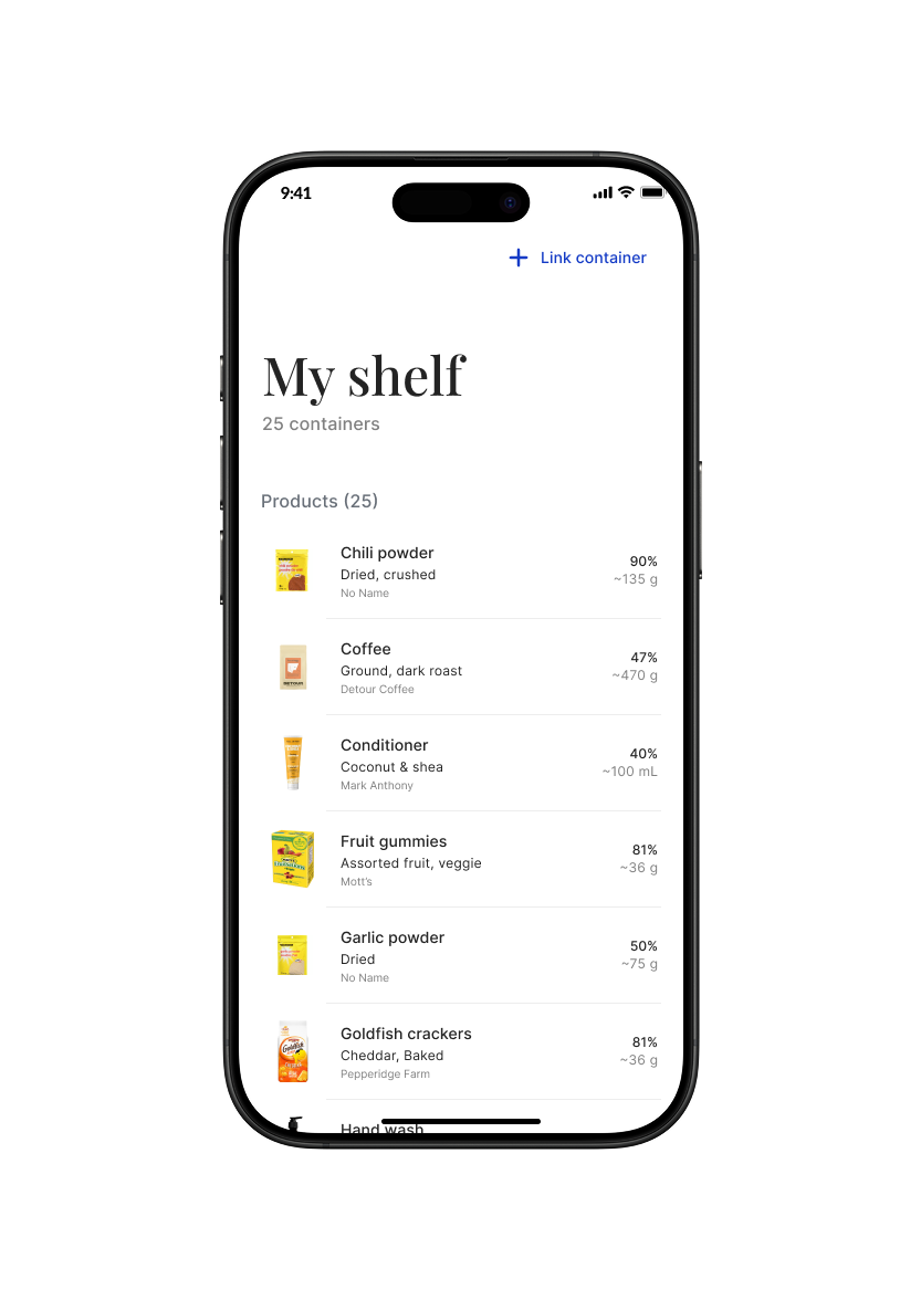 Smart containers that automatically reorder what's inside. Never worry about restocking.